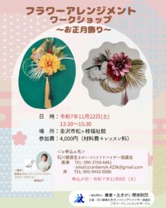 お正月飾りのフラワーアレンジメント開催のお知らせ